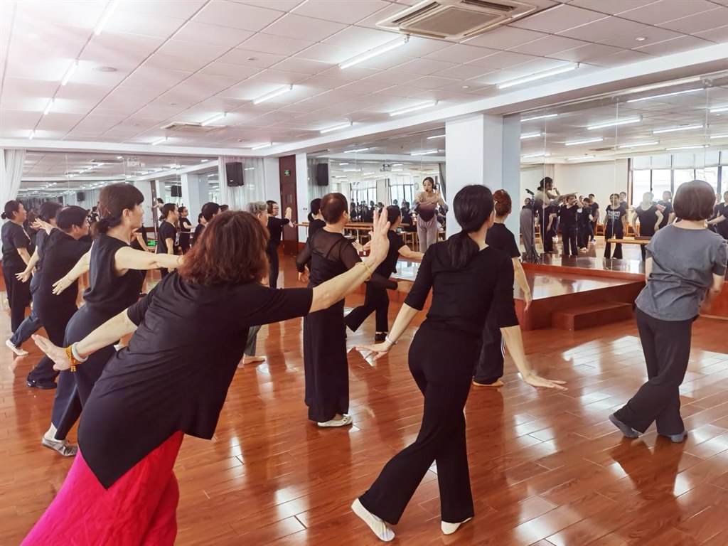 优雅美丽的谈老师,一亮相就让人感到亲切,一开口就让大家特别心安:“大家不用担心学不会,每个人都是从零开始的,你们每个人都可以跳得很好”。同学们大多跟我一样是舞蹈小白,担心自己老胳膊老腿缺乏协调性,跟不上节拍,谈老师能把复杂的舞蹈动作拆解得细致入微,每一个节拍上手、脚、头的动作都是耐心地反复示范,并不断的鼓励大家,跟着老师的亦步亦趋,大家忐忑的心开始松弛下来,不知不觉就学会了大半个舞蹈。