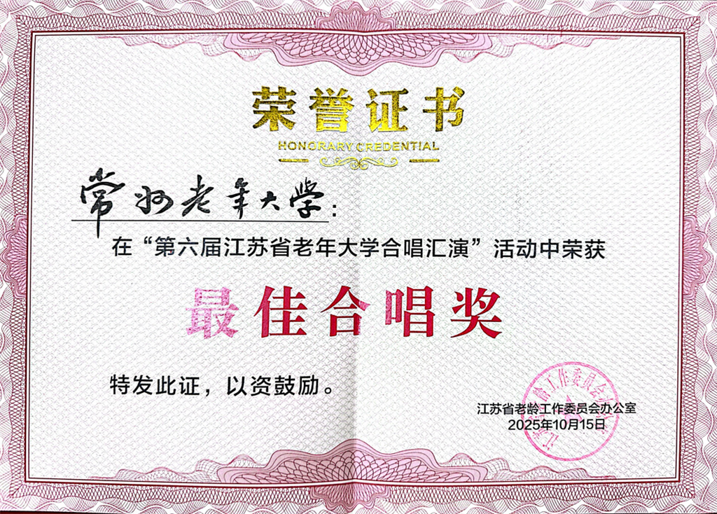 10月15日,由省民政厅,省老龄委办公室,省广播电视总台,省老龄协会,省老年大学联合举办的主题为“讴歌新时代,唱响新生活”第六届江苏省老年大学合唱汇演在常州传媒大厦金色大厅落下帷幕。常州老年大学合唱团凭借一曲辽阔奔放、苍劲悠远的《敕勒川》受到专家评委高度评价。在全省13个地级市14家老年大学合唱团的激烈角逐中,我团以97.68的高分成功摘得“最佳合唱奖”。这是我团首次代表常州参赛斩获省级赛事奖项。
