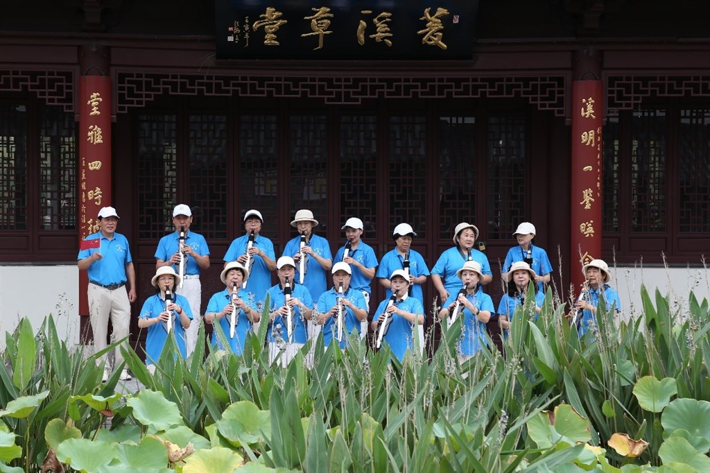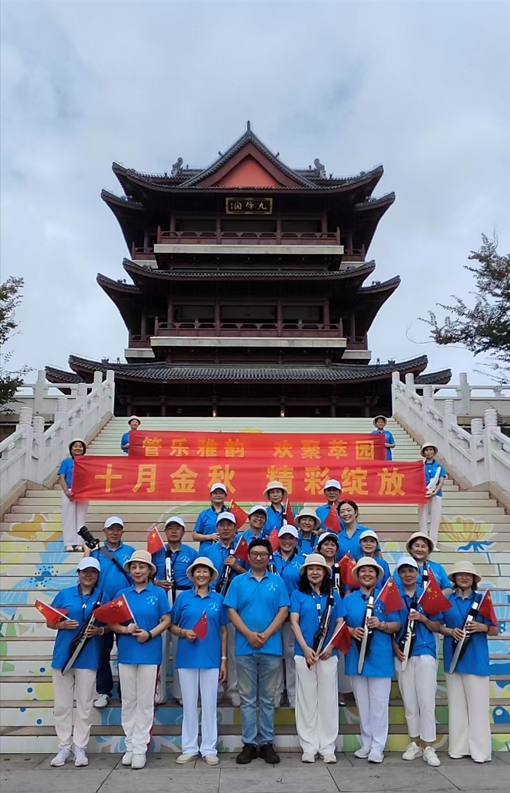 红歌联唱绕梁音,萃园秋色意更浓“今天的萃园红歌嘹亮,电吹管红歌联唱回旋在萃园的上空……” 这句话精准地捕捉到了活动当天最动人的场景。《我爱你,中国》《歌唱祖国》《浏阳河》等一首首脍炙人口的红色经典旋律,在电吹管富有穿透力与感染力的音色演绎下,焕发出新的生命力。乐曲时而悠扬婉转,深情款款,诉说着对峥嵘岁月的追忆与对祖国山河的挚爱;时而高亢嘹亮,气势恢宏,抒发了迈向新时代的豪情壮志。乐声在萃园的古典长廊中穿梭,在如镜的湖面上荡漾,与摇曳的树影、飘香的金桂交织在一起,构成了一幅情景交融、动人心弦的画卷。驻足聆听的观众,有的情不自禁地跟着旋律轻声哼唱,有的拿出手机记录下这难忘的时刻,有的则闭目凝神,完全沉浸在这美妙的音乐世界里。电吹管奏响的红歌,不仅是一次艺术的呈现,更是一次情感的共鸣与精神的洗礼,让在场的每一个人都深切感受到了音乐凝聚人心、激荡情怀的巨大力量。