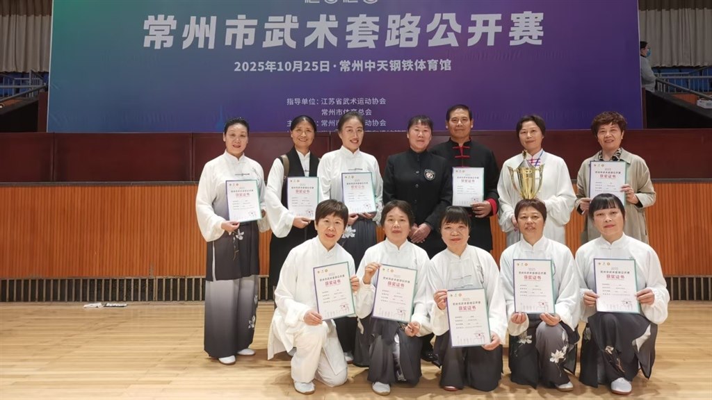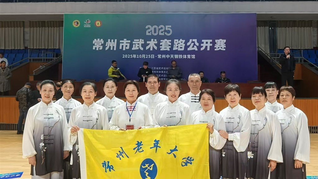 秋高气爽,丹桂飘香;武林群英,汇聚一堂。2025年10月25日,常州市武术套路公开赛暨江苏省首届传统武术锦标赛选拔赛,于常州中天钢铁体育馆隆重启幕。常州老年大学太极表演队一行十二人,在领队孙玉华的带领下,意气风发,从容赴赛。