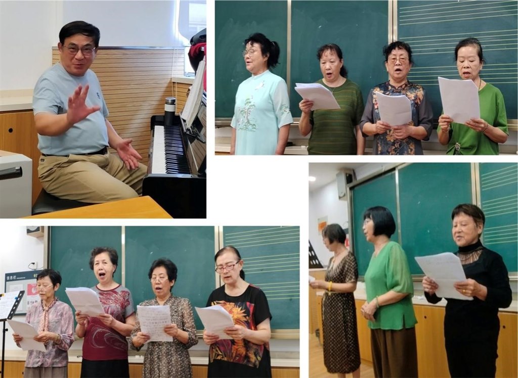在沈建秋老师的专业指导和独特的教学方法指导下,同学们学唱新歌的水平,是日渐增长,新歌到手,跟着沈老师的钢琴伴奏3—5遍,就能不跟琴唱整首歌谱,随即便带歌词学唱,一周后还课。