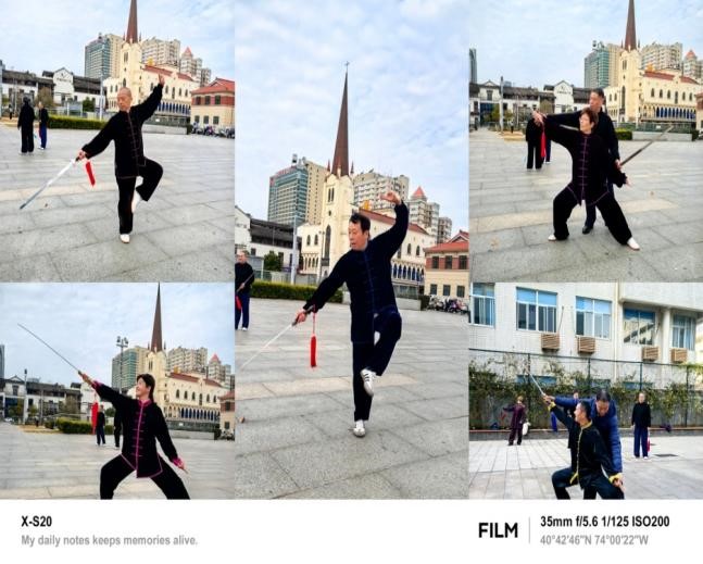 然而,独木难成林。这份圆满,同样深深植根于学员们所构成的这片丰沃土壤。练剑场,从来不是一个人的江湖。它是相互镜照、彼此切磋琢磨的共同空间。当一个动作晦涩难通时,是同伴的探讨与示范点亮了灵光;当汗水浸透衣衫、重复令人疲惫时,是彼此鼓励的眼神与坚持的身影汇聚成继续向前的动力。这种共同努力下滋生的情谊与氛围,让学习超越了单纯的技艺获取,成为一种温暖的集体修行与生命体验。龙洲伊都、人民公园、文化宫广场都有我们练剑的身影,就这样个人的坚持,因集体的共鸣而愈发有力;集体的进步,则由每个学员的汗水所铸就。