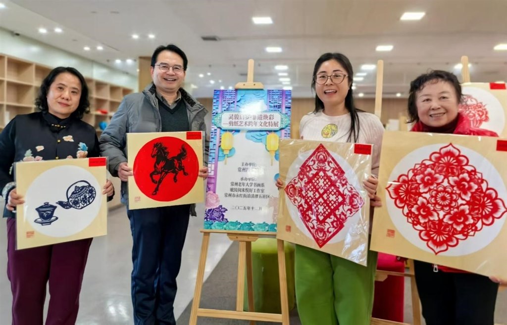 12月25日午后,常州图书馆内洋溢着浓厚的艺术气息,剪纸社团的师生们齐聚一堂,在这里举办了一场别开生面的交流展示活动。现场展出了指导老师与部分学员精心创作的剪纸作品,每一幅都凝聚着巧思与匠心,线条流转间不仅展现出精湛的技艺,更传递出对生活的热爱、对艺术的执着,以及一份贯穿岁月始终的乐观与从容。