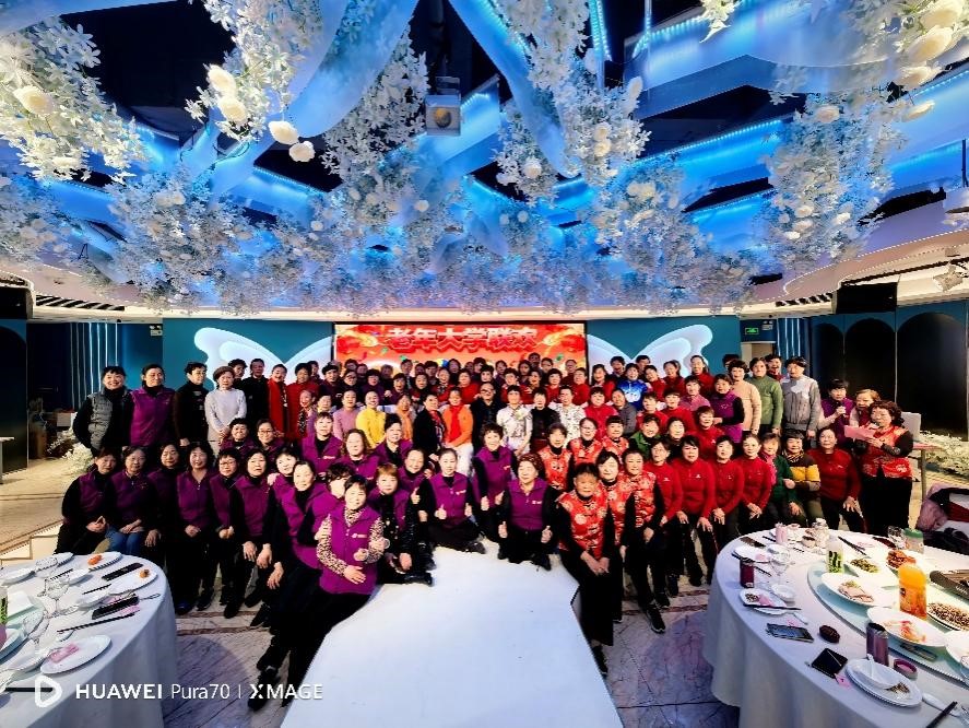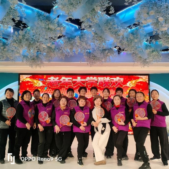 当《苍穹唤》的旋律缓缓流淌,学员们以最美的姿态翩翩起舞,拉开了年会的序幕,这一曲《苍穹唤》舞的是柔力球的刚柔并济,展现出我们学员心有苍穹,向阳而行的最美风采。学员们还相继表演了《祖国你好》《呼伦贝尔大草原》《一路歌唱》《梦想家》等。这一抹抹舒展的身影是岁月沉淀的优雅、是坚持不懈的最美模样。经典声声入耳,由罗班长、黄颖、黄洁姐妹俩合作演唱沙家浜选段《智斗》虽为临场搭档,却配合默契、一腔一调韵味十足,给我们留下深刻记忆。我们班学员带着满腔热情为大家展演了柔力球《飞龙二套》初学起步,虽未有行云流水的娴熟、却有着全力以赴的真诚。年会在《藏歌唱起来》、双人恰恰舞《芒果香》、沪剧《办喜事》、京剧《三家店》等。的才艺展演中不断推向高潮,学员们用最热爱的方式,诠释着老有所乐、老有所为的这份美好。最美压轴当属徐老师、张老师与学员们为我们带来的柔力球串烧《杏月柔风满西楼》,行云流水的动作里,藏着柔力球的圆融之美,勾勒出中式雅韵的唯美画卷。