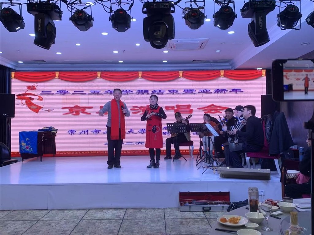 时光匆匆,常州市老年大学声乐系京剧专业2025年秋季班的课程已经结束。元月7日下午,京剧青衣班携手老生老旦班,在如缘大酒店举办了2025年学期结束暨迎新年京剧演唱会。这是两个班第四次举办联欢演唱活动了。自2023年6月开启首次联欢活动后,每个学期结束时的联欢之约,便成了京剧青衣班与老生老旦班学员心中最温暖的期盼。在每次的联欢演唱中,青衣的婉转柔美、老生的苍劲雄浑、老旦的醇厚沉稳,在一次次同台中以国粹之音相融相生,不仅让传统京剧艺术在校园里薪火相传,更让一群因戏结缘的银发戏迷们在唱腔里寻得乐趣,在相聚中收获温情,更是用赤诚热爱点亮银龄时光。