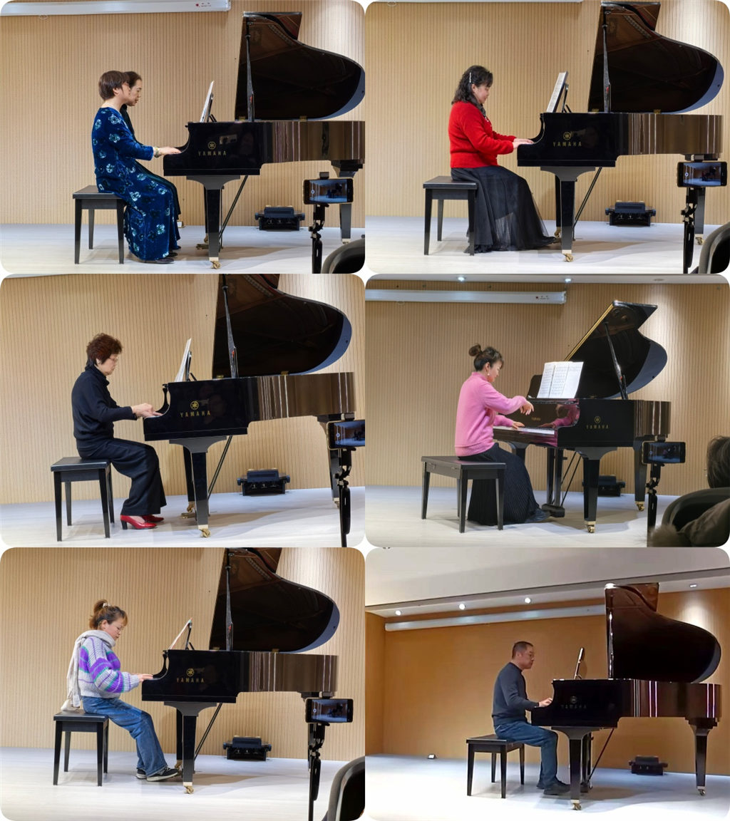 飒飒冷风丝毫不能减弱室内的激情,师生情谊如同冬日的暖阳,温热了我们每一个人的心。两年多的时间里,曹老师以一颗真诚的心严格要求我们,以独特的教育方式引领我们进步。我们一边抱怨,一边刻苦练琴。我想,这才是最好的教学。他从来没把我们看成老人,像要求孩子一样要求我们,这是给老人最高的尊严!我们也没把他看成大人,经常和他耍耍赖,撒撒娇。这种似亲人又超出亲情,是师生又高于师生的情感,才是人世间的至美至纯。小寒挡不住我们,大寒也不会挡住我们,我们来了!