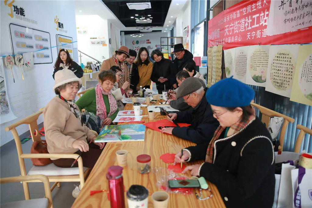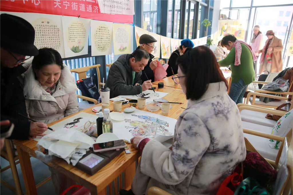 当红底洒金的春联遇上冬日的温馨暖阳,当笔墨丹青的雅致碰撞邻里相聚的热闹,一场名为“柴米油盐酱醋茶·岁暖影像”暨“墨韵送福至”的迎新春活动,在天宁街道社区公共文化空间温情启幕。近20名来自常州老年大学书画文史学院、常州老年书画研究会青山分会、常州市社科基地大运河81号艺术微展馆的老师,或挥毫泼墨或手持相机,将百姓的日常烟火融入一幅幅书画、人文摄影的创作中……通济桥社区、常州市海棠社会工作服务中心为本次活动助力,让这小小爱心驿站成为文化传递的枢纽。在新春将至之际,为通济桥社区注入了浓浓的年味与暖意。