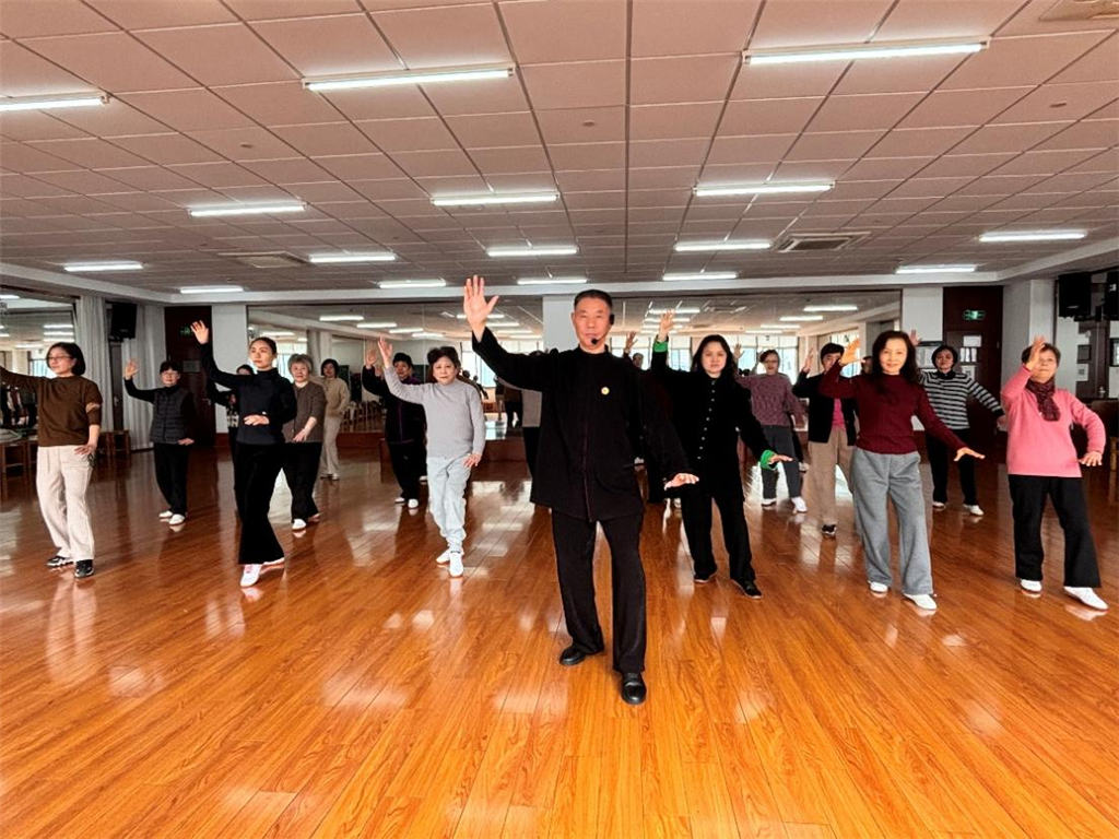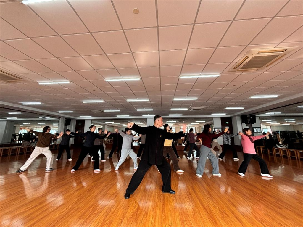 钱老师教拳,格外细致用心。一个 “揽雀尾”,从捋到挤再到按,一招一式都拆解得分明透彻;一个金鸡独立,脚的站位、胯的摆动,他都不厌其烦地逐一纠正。谁的动作不到位,他便走下讲台,走到学员身边,轻轻扶一下胳膊,或是稍顶一下腿弯,手把手指导。学拳路上,钱老师始终讲究循序渐进,重基本功、重动作规范,他常说,动作不规范容易伤膝盖,我们打太极,本就是为了身心健康。从最基础的二十四式,到四十式,再到四十二式,在钱老师的耐心指导下,我们这帮起初四肢僵硬的初学者,慢慢变得从容舒展,一套云手,竟也打出了几分行云流水的韵味。