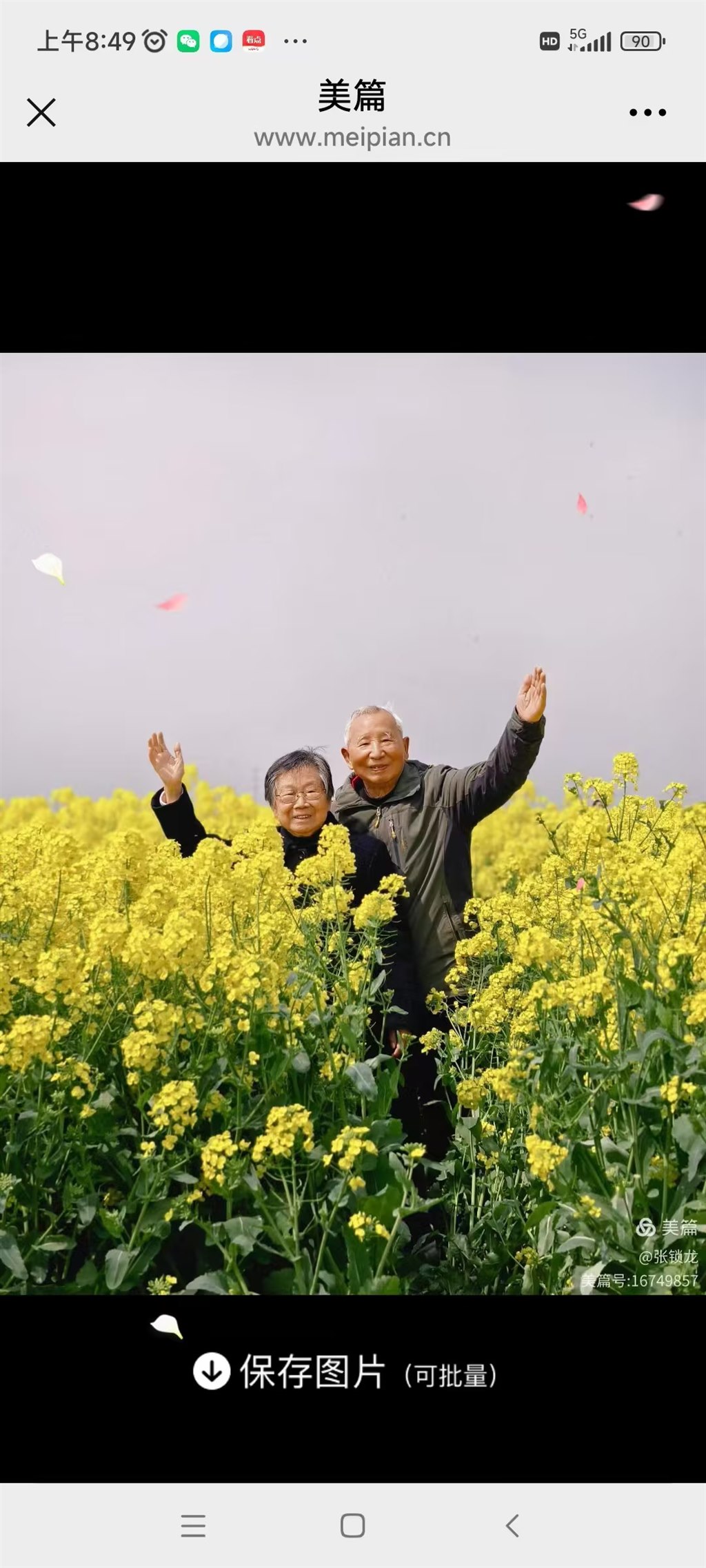 这美好的日子不能忘记,已铭刻在我的脑海里,当年的恋人,牵手至今,风雨同舟60载,即将迎来珍珠婚。今儿我俩又一同来观花闻香,难忘这“麦苗儿青青菜花黄,千里迢迢为哪般,为了寻找心上人,三叉河畔来叙情。”