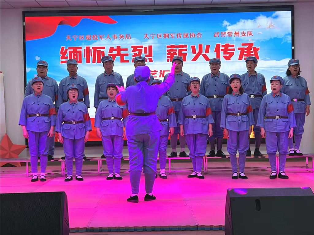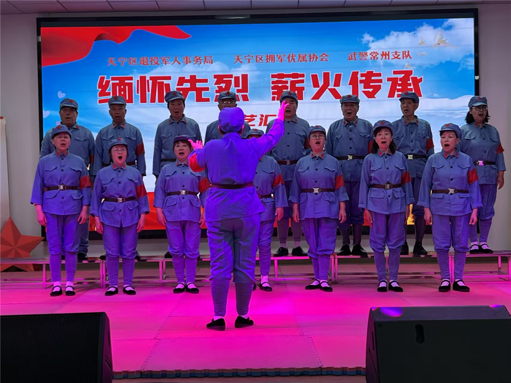 祭扫仪式结束后,我们移步天宁双拥协会对子弟兵进行慰问演出。作为常州老年大学经典红歌社团,我们以歌声为媒、以情怀为脉,用一首首经典红色歌曲唱响对先烈的缅怀、对祖国的赞颂。特别是我们一首《红军不怕远征难》的铿锵有力的旋律、真挚饱满的情感,不仅唱出了红色岁月的热血与坚守,更唱出了新时代人民群众不忘初心、砥砺前行的坚定信念,更唱进了广大子弟兵的心坎里。演出过程中,现场观众深受触动,掌声阵阵,不少参与者热泪盈眶,在歌声中重温革命历史、感悟精神力量。