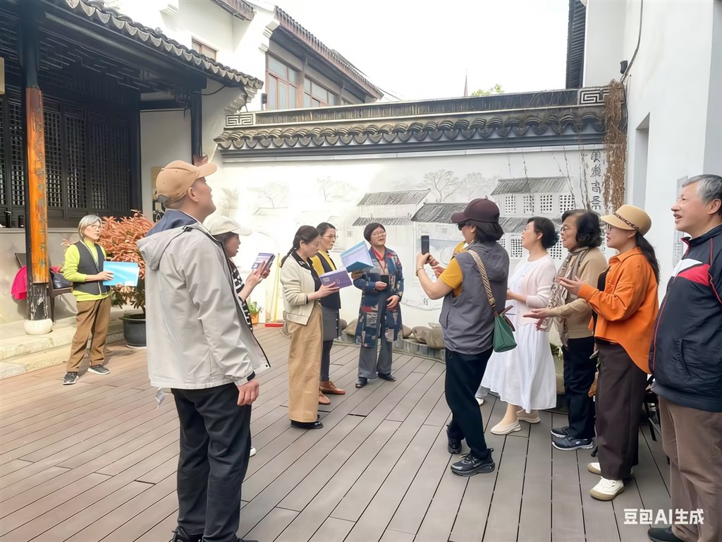 “梨花风起正清明,游子寻春半出城”,清明时节梨花正盛开,春风花草香,又与春假一相逢,人们倾城而出踏青,欣赏大自然最鲜艳的春天。“鹿鸣吟诵社团”的成员却早早相约,结伴在“方志馆”吟诵,尽享岁月的静好,吟诵的韵律。穿过前后北岸街区的青石板路,黛瓦白墙的常州“方志馆”在巷陌深处静立着。这座藏在闹市中的“方志馆”(前北岸30号),“结庐在人境 而无车马喧”,只有墨香与历史交融的沉静 。这是“鹿鸣吟诵社团”今年的第一次活动,热爱吟诵的好朋友相聚格外兴奋,屠云丽从上海回常,特地赶来、社团顶梁柱的两位男生(丁元昌和蒋为民)准时赴约,还有这学期的新同学黄萍也早早到馆……,静谧的“读书楼”庭园里,顿时热闹起来,相互的问候声,吟诵的练习声,汇成友谊的交响乐。