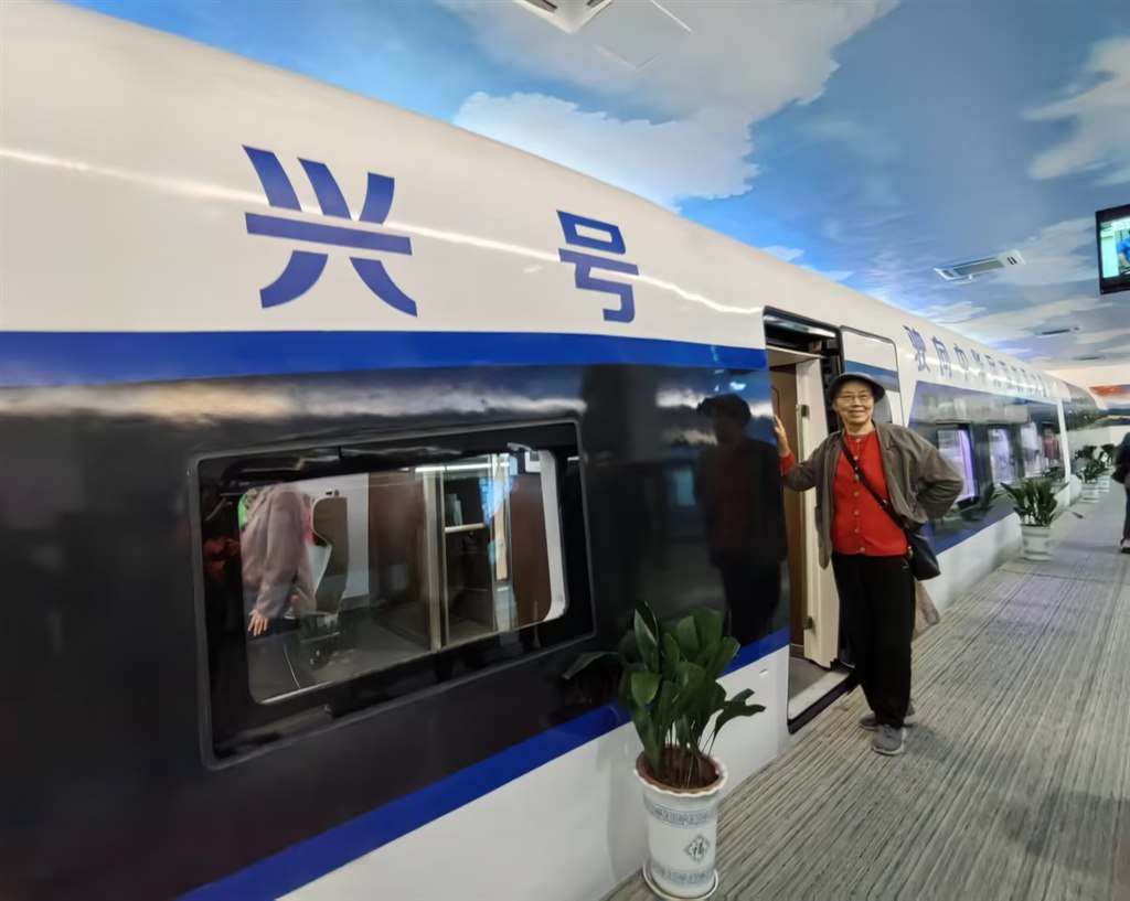 根据厂部的安排,专业讲解员把我们领进二楼的集团产品展示厅,他指着墙上一幅幅图片和照片娓娓道来:今创集团是由一个名不见经传的常州 从 本土微小企业跃升为轨道交通的大型企业,它从早期为普通列车制造配件到为和谐号,复兴号的全面配套,再到出口英法,新加坡等国的产品,清晰地展现了中国轨道交通从追赶到领先的发展历程。随着讲解员的一步步讲解着,移动着,突然眼前看到二节仿真度极高的高铁车厢模型,经允许同学们进入车厢,车厢内部宽敞明亮,座椅舒适整洁,灯光,扶手,卫生间等设施一应俱全,讲解员热情地介绍:这车厢模型与我们乘坐的高铁一模一样,从座椅,车窗,车门,风挡,车钩,电气控制系统等等很多关键部件都由我们今创自主研发生产,这时同学们眼中闪烁着惊喜与钦佩,“原来我国的高铁内装竟有这么多“常州造”,参观结束,我们内心满是震撼,以前我们乘坐高铁和地铁时很少留意背后的配套企业,而今天参观的今创正是这样的“隐形冠军”。今创集团是由当初的配套小厂经过几十年的打拼慢慢发展壮大的,它既是民营企业的标杆,又是“中国造”向"中国智造转型的生动缩影,值得我们每一个常一州人骄傲。