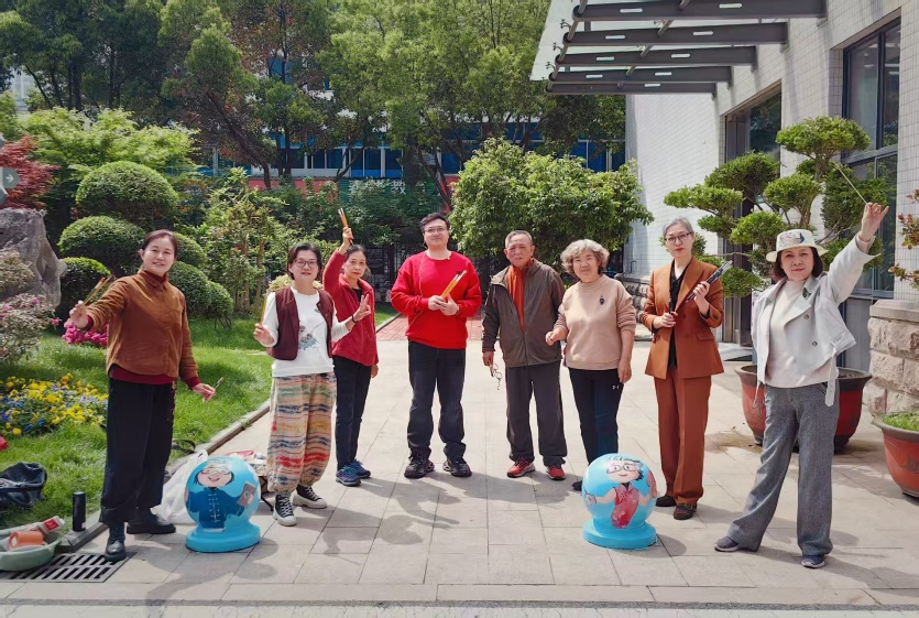 作为老年大学四十周年校庆系列活动的序曲,去年下半年开展了全校性征集校园“吉祥物”活动,共收到近三十套各院系师生的“吉祥物”设计方案。经过网络投票,专家推荐、领导审定各个环节,最终确定原书画系李云霞学员主创设计的“达达观观”(原名“常乐君”)为校园吉祥物。李云霞是原书画系的资深班长、学联会成员,除了长期练习书画,在平时喜欢书画名著阅读及古典诗词,较为深厚的文化涵养和底蕴,更是AI技术应用及制作短视频的高手。她的吉祥物设计方案在强手如林的吉祥物评选中最终蟾宫折桂,并不让人感到奇怪,完全是平素积累水到渠成之事。