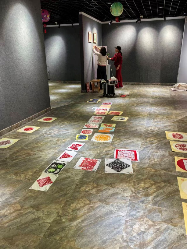展厅中,张黎辉老师、陆渊老师、徐文捷老师以及各位同学的作品同样精彩纷呈,每一幅都藏着独特的巧思与匠心,因篇幅有限,便不再一一细细描述。筹备现场,大家各尽其责、埋头苦干,专注于手中的工作,时光在不知不觉中悄然流逝。转眼到了下午四点,其他课程结束的同学们也陆续来到展厅,驻足欣赏一幅幅精美的剪纸作品,细细品味传统艺术的韵味。