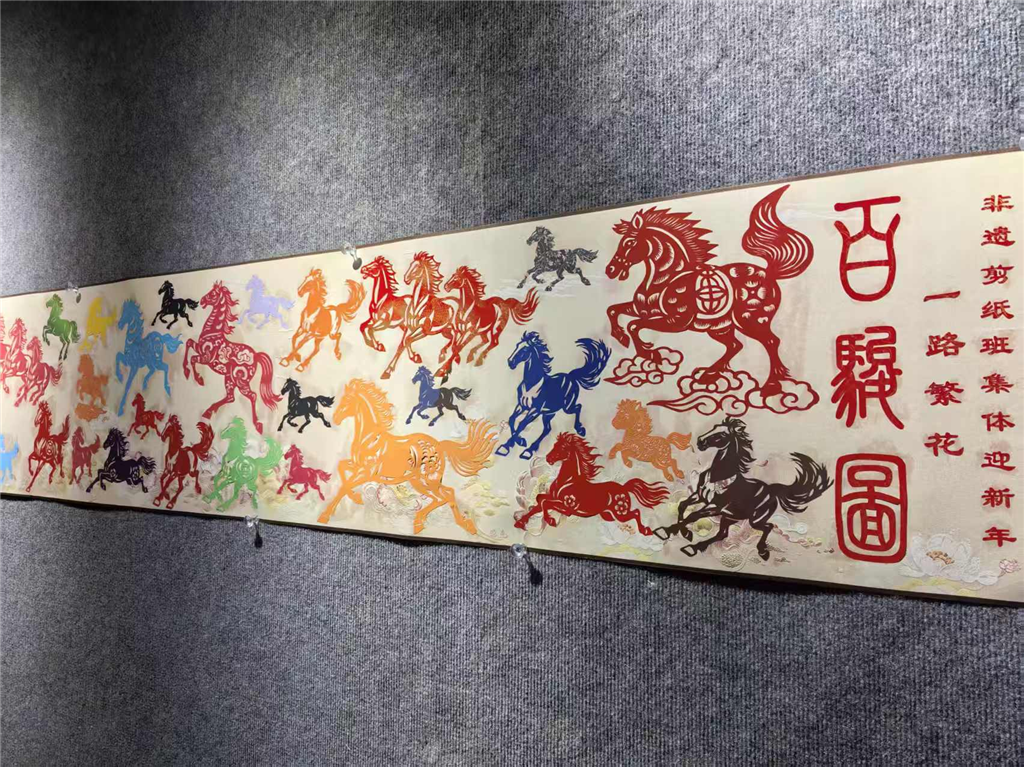 此次画展中,也有我创作的一幅马年主题剪纸画,承载着我对马年的美好祝福与对剪纸艺术的满心热爱。忙碌了一下午,从筹备布展到圆满呈现,看着满场精心布置的作品,心中满是自豪与欣慰。
