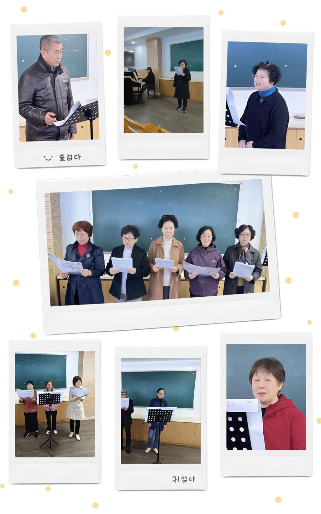 一首歌的学唱,从唱谱开始。这首歌节奏自由明快,十六分音符在歌曲中间部分多达十几小节,开始唱谱时,怎么也唱不利索。沈老师钢琴伴奏时就放缓节奏,示范演唱符点音节,提示大家休止符声断气不断,有换气符号一定要注意,慢慢地自然顺畅了,唱的也连贯了不少。在唱谱熟练掌握的基础上,加歌词唱整体感觉就出来了。歌词加优美的旋律,整首歌曲意境更丰满了。在沈老师完整地示范演唱《梦茉莉》后,新歌的演唱教学,在同学们的掌声中圆满结束了,还在期待中……